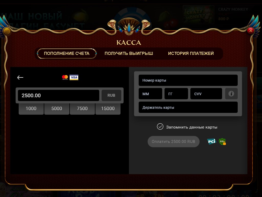 Игровой клуб Faraon – вывод денежных средств в игровых автоматах на карту