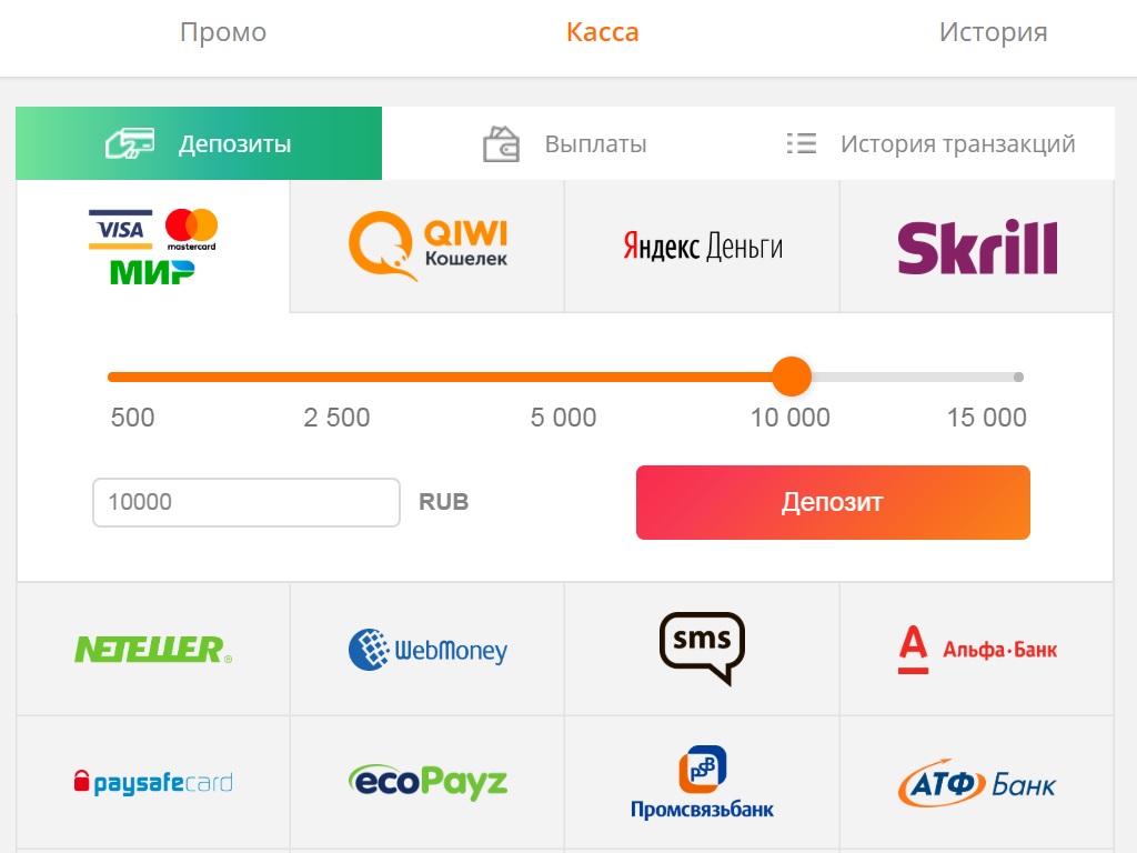 Количество платежных систем на официальном сайте и работающем зеркале Slot V не слишком большое, но здесь есть все необходимые рядовому гемблеру варианты. Список выглядит следующим образом: