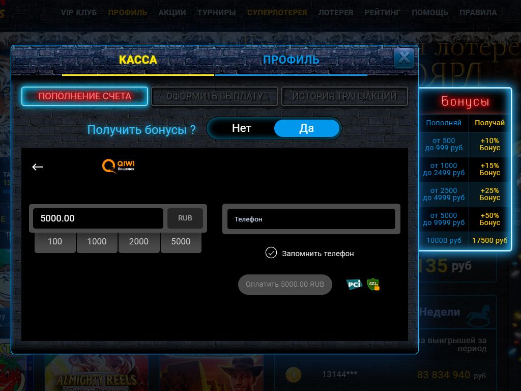 Вулкан Старс Россия – вывод реальных выигрышей в личном кабинете